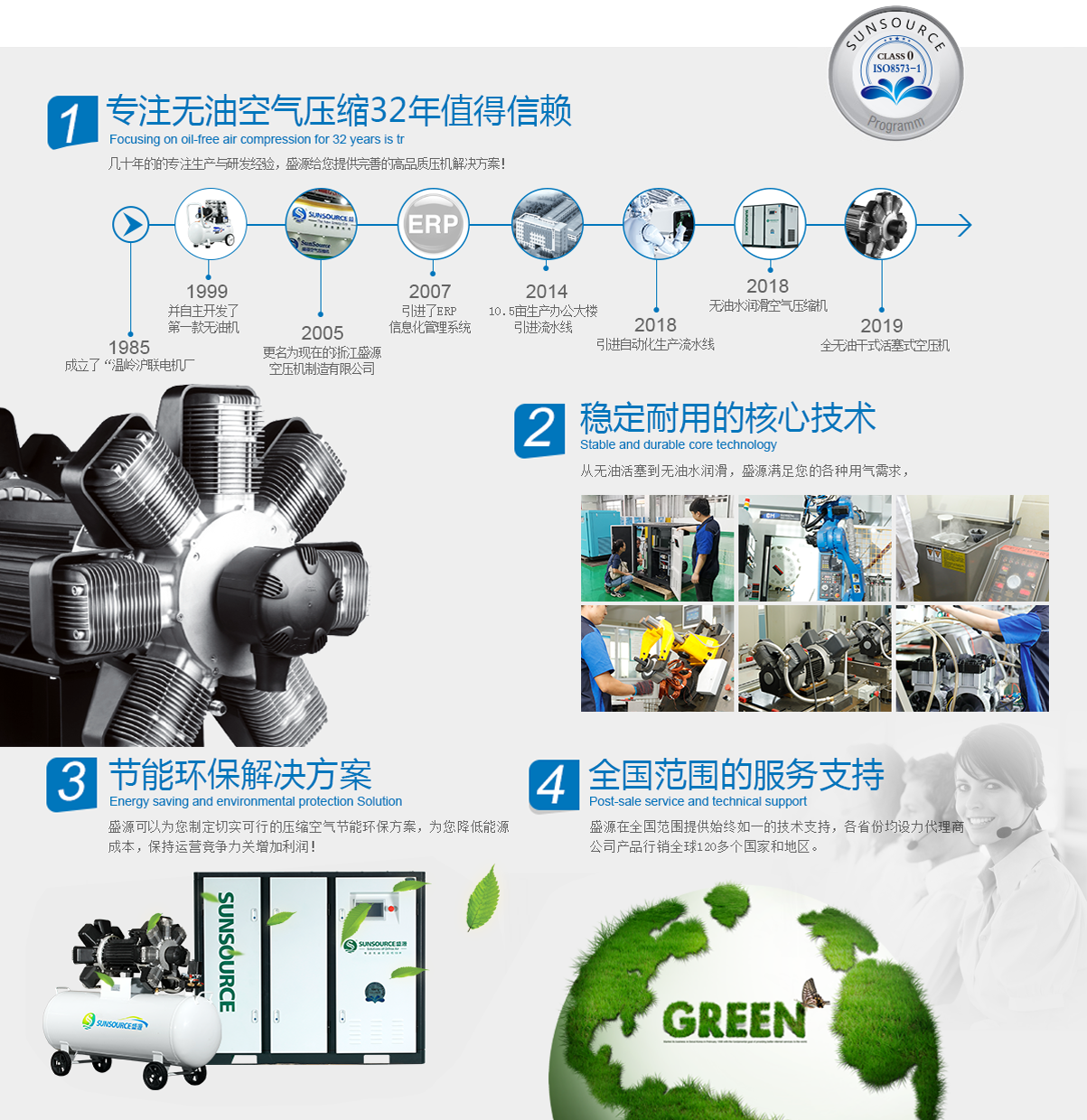 • Zhejiang Shengyuan Air Compressor Manufacturing Co., Ltd. is a large-scale enterprise that researches and manufactures oil-free vacuum pump series, new energy electric air compressors, air compressor equipment, medical equipment, permanent magnet servo motors, industrial investment and other diversified businesses. It is a national high-tech enterprise and Zhejiang provincial technology research and development center.